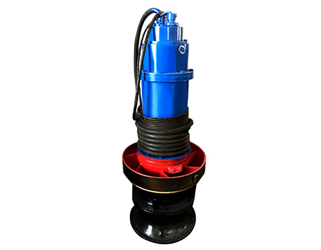 臥式安裝:潛水軸流泵+支架潛于水下,支架起固定作用。適用于水池。魚塘等場合。